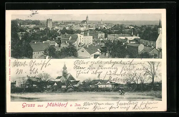 AK Mühldorf am Inn, Totalansicht, Kirche