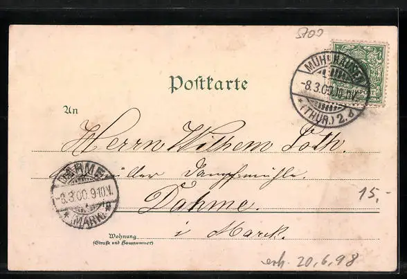 alte Ansichtskarte, gelaufen 1900, guter Zustand