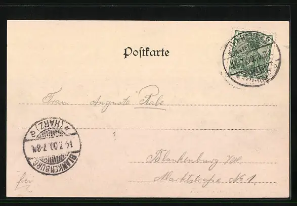 alte Ansichtskarte, gelaufen 1900, minimaler Einriss li. oben, guter Zustand