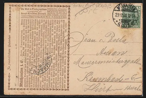 alte Ansichtskarte, gelaufen 1900, guter Zustand