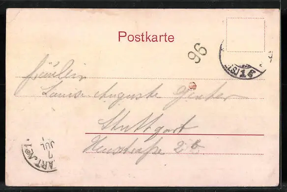 alte Ansichtskarte, gelaufen, Briefmarke entfernt, guter Zustand