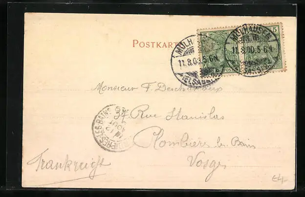 gelaufen 1900, Eckknick oben re. u. unten li., guter Zustand