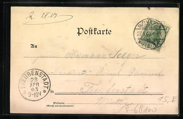 alte Ansichtskarte, gelaufen 1903, guter Zustand