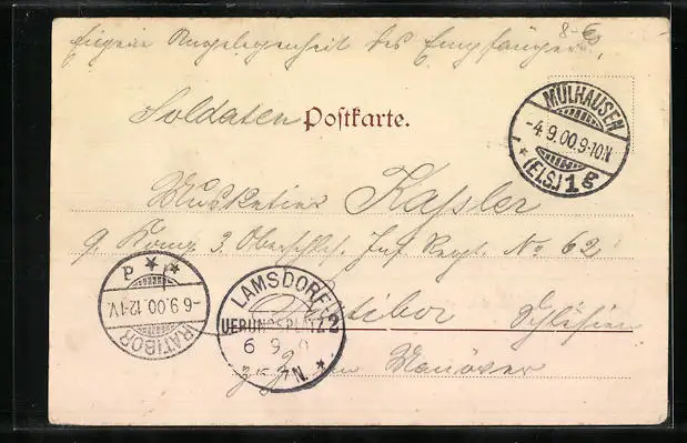 alte Ansichtskarte, gelaufen 1900, Eckknick re. oben, guter Zustand