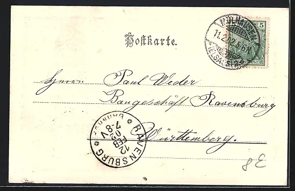 alte Ansichtskarte, gelaufen 1902, guter Zustand