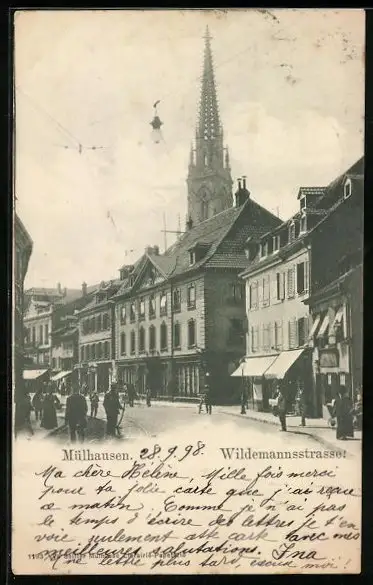 AK Mülhausen, Wildemannstrasse mit Kirche