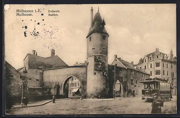 AK Mülhausen i. E., Bollwerk, Strassenbahn