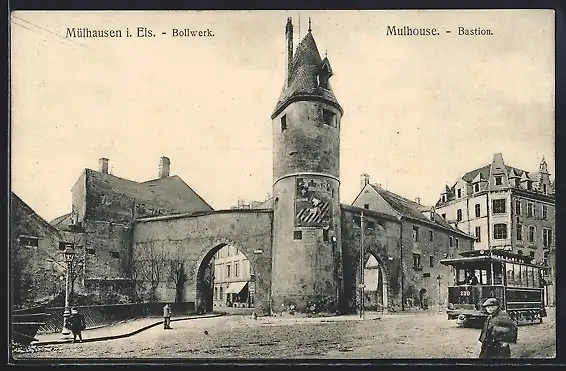 AK Mülhausen i. E., Bollwerk, Strassenbahn