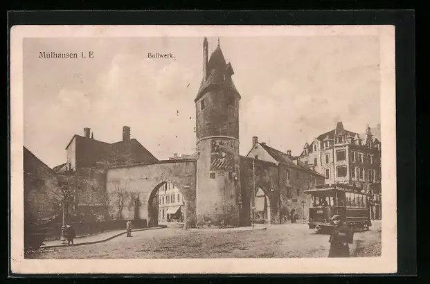 AK Mülhausen i. E., Bollwerk mit Strassenbahn