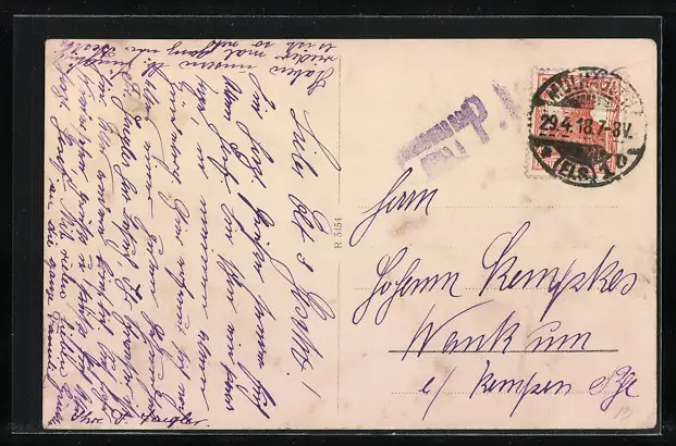 alte Ansichtskarte, gelaufen 1918, Eckknick oben re., guter Zustand