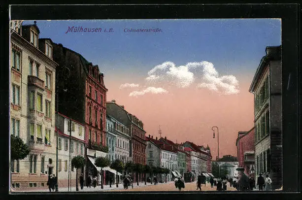 AK Mülhausen i. E., Colmarerstrasse mit Passanten