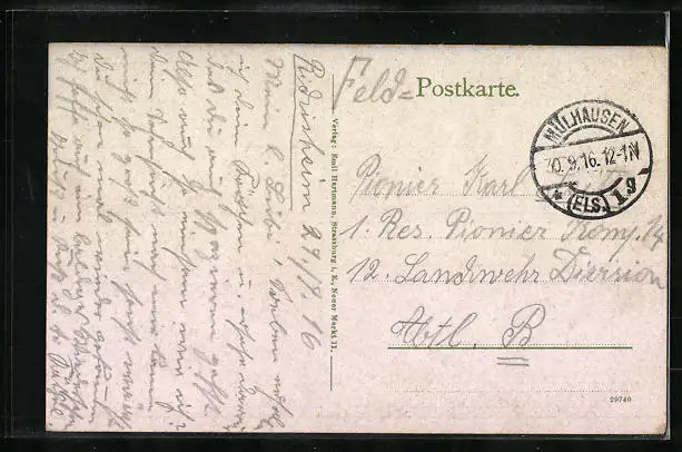 alte Ansichtskarte, gelaufen 1916 als Feldpost, Eckknick li. oben, guter Zustand