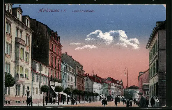 AK Mülhausen i. E., Colmarerstrasse mit Passanten