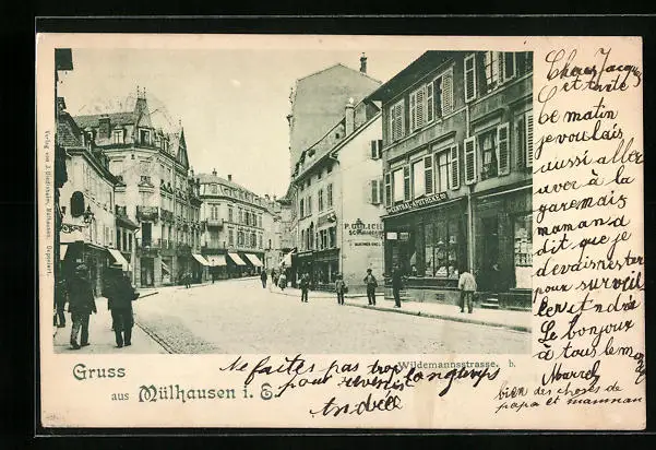 AK Mülhausen i. E., Wildemannstrasse mit Geschäften