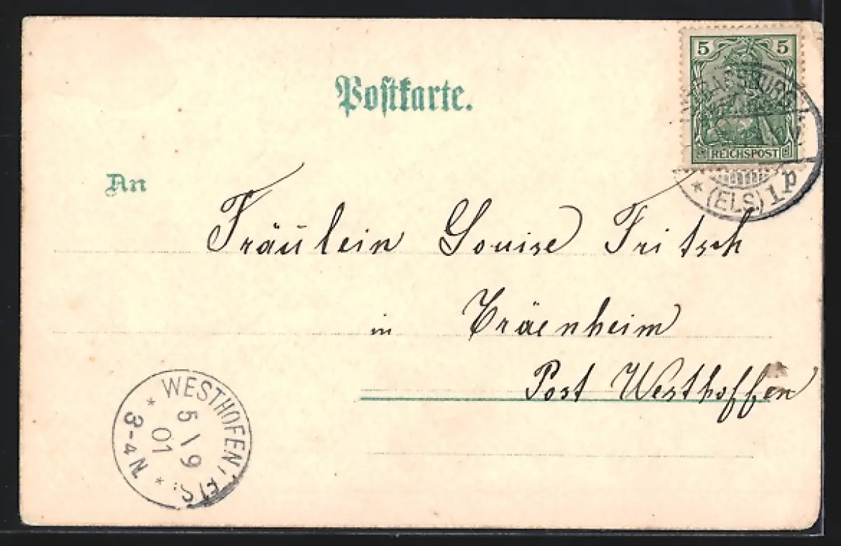alte Ansichtskarte, gelaufen 1901, guter Zustand