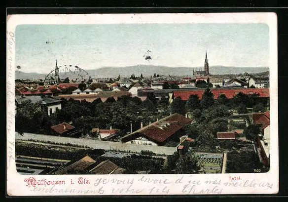 AK Mülhausen i. Els., Totale aus der Vogelschau