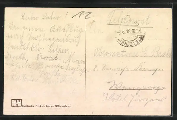 alte Ansichtskarte, gelaufen 1918 als Feldpost, Eckknick re. oben, guter Zustand