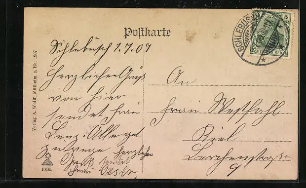alte Ansichtskarte, gelaufen 1909, Eckknick li. unten, guter Zustand