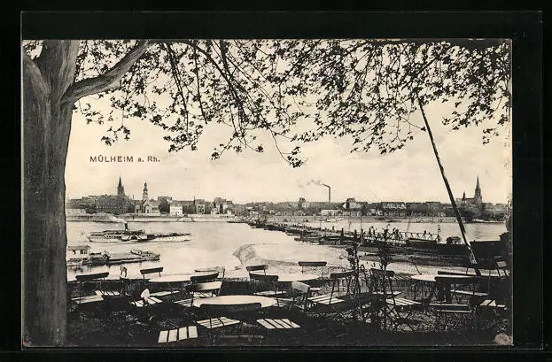 AK Mülheim a. Rh., Uferpartie mit Gartenwirtschaft