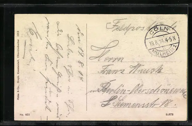 alte Ansichtskarte, gelaufen 1914 als Feldpost, guter Zustand