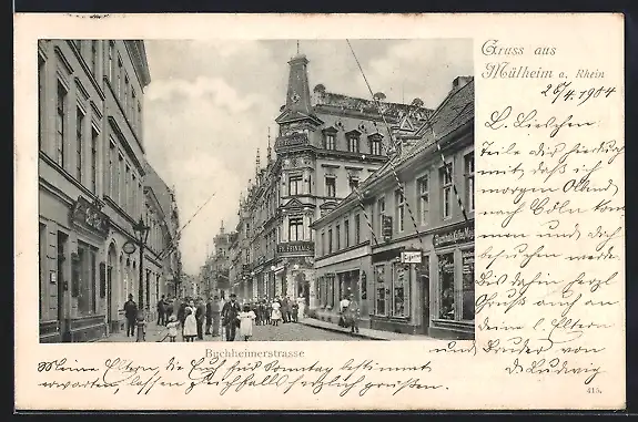 AK Mülheim a. Rhein, Geschäfte in der Buchheimerstrasse