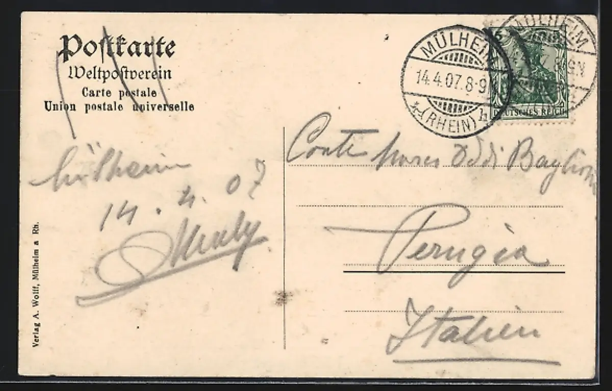 alte Ansichtskarte, gelaufen 1907, Eckknicke li., guter Zustand