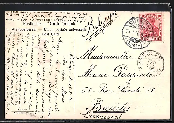 alte Ansichtskarte, gelaufen 1910, guter Zustand