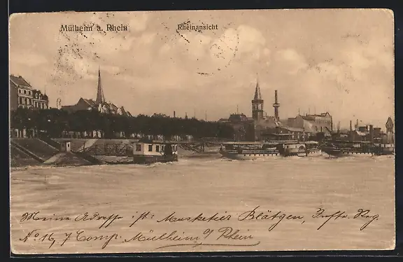 AK Mülheim a. Rhein, Rheinansicht mit Dampfern