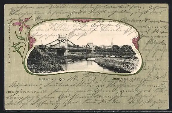 AK Mülheim a. d. Ruhr, Flusspartie an der Kettenbrücke
