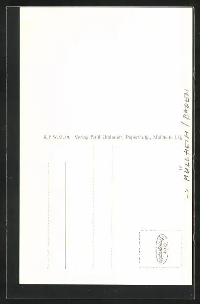 Personenbezogene Daten auf der Rückseite der Karte wurden durch blauen Textmarker unkenntlich gemacht. Die blauen Stellen sind auf die Vorderseite durchgeweicht und wirken sich negativ auf das Postkartenfoto aus
