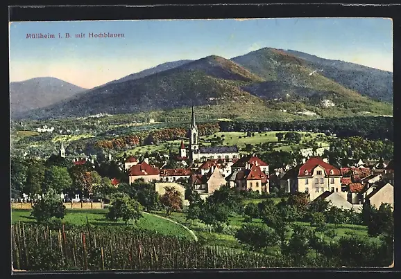 AK Müllheim i. B., Ortsansicht mit Hochblauen