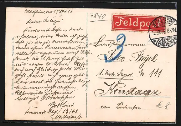 gelaufen 1915, guter Zustand