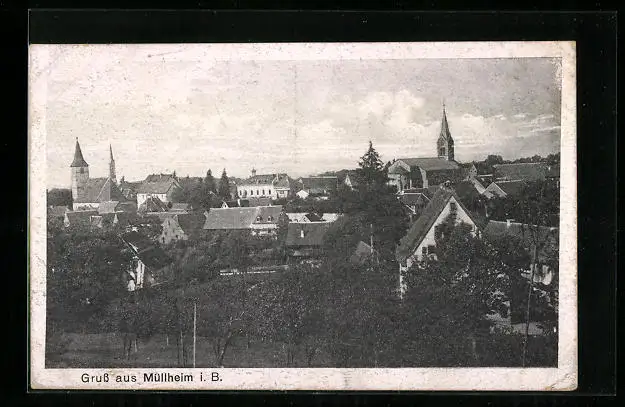 AK Müllheim i. B., Ortsansicht mit Umgebung