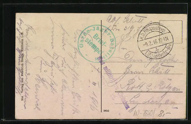 alte Ansichtskarte, gelaufen 1916, Eckknicke rechts, guter Zustand