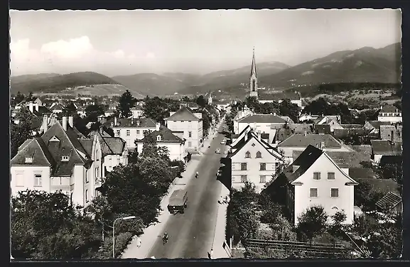 AK Müllheim i. B., Strassenpartie mit Kirche