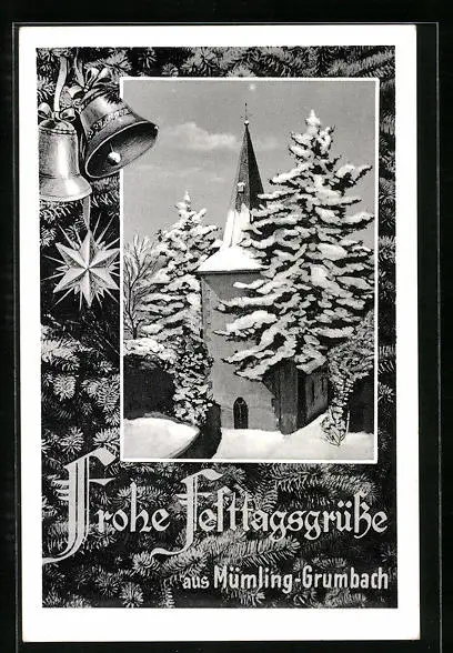 AK Mümling-Grumbach, Die Kirche zur Winterzeit