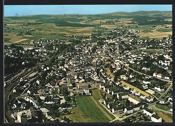 AK Münchberg / Fichtelgebirge, Teilansicht mit Kirche