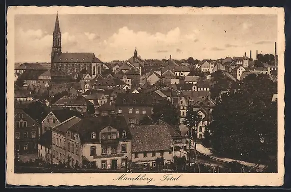 AK Münchberg / Fichtelgebirge, Totalansicht mit Kirche