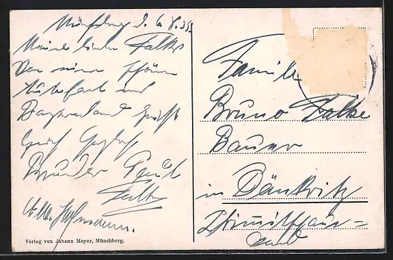alte Ansichtskarte, gelaufen 1935, Briefmarke entfernt mit Oberflächenschaden, guter Zustand