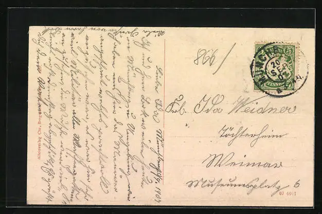 alte Ansichtskarte, gelaufen 1907, Stempelspur, guter Zustand