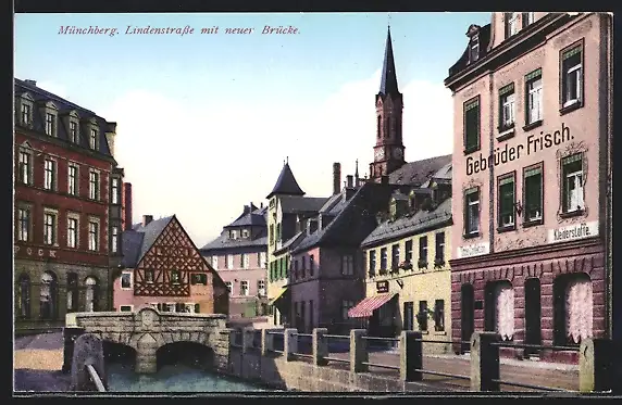 AK Münchberg, Lindenstrasse mit neuer Brücke