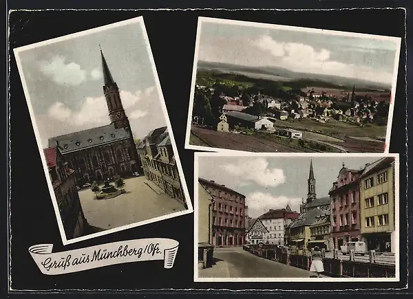 AK Münchberg /Ofr., Teilansicht, Kirche, Strassenpartie