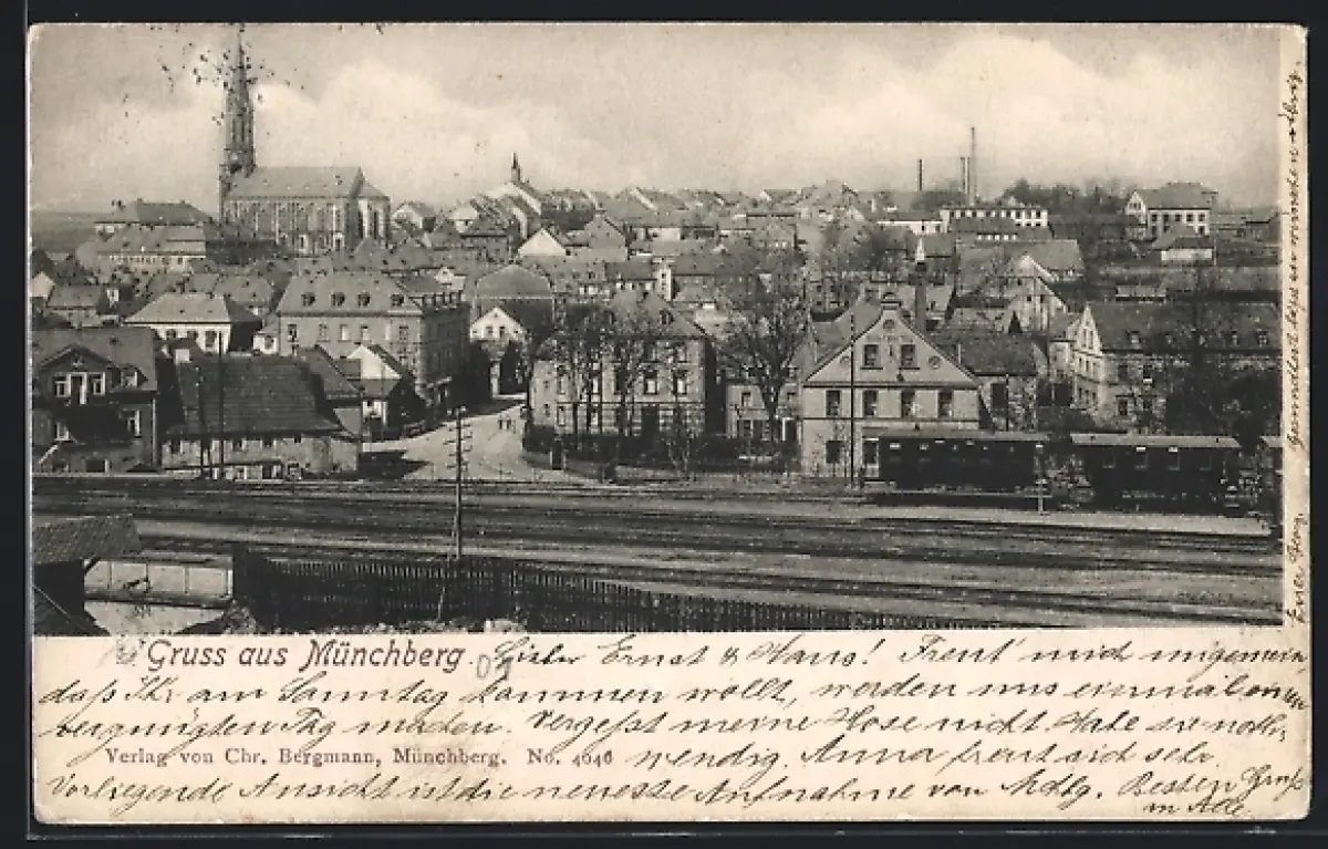 AK Münchberg, Ortsansicht mit Blick zur Kirche