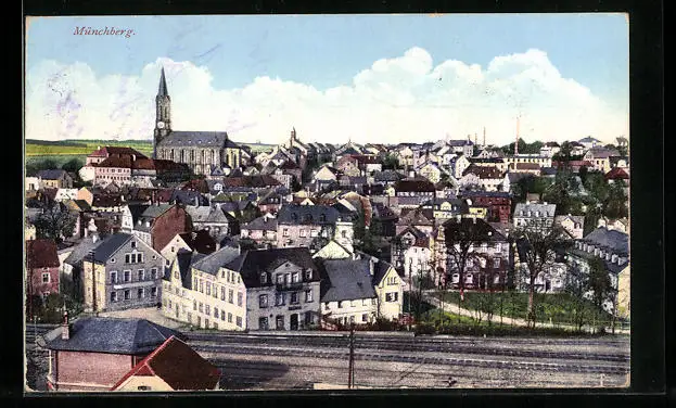 AK Münchberg, Teilansicht mit Bahnschienen von oben