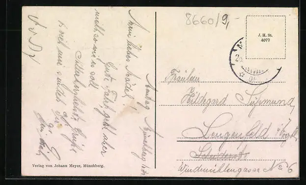 alte Ansichtskarte, gelaufen, Briefmarke entfernt, guter Zustand