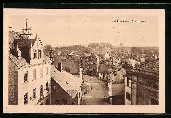 AK Münchberg i. B., Blick auf den Kreuzberg mit Strassenpartie