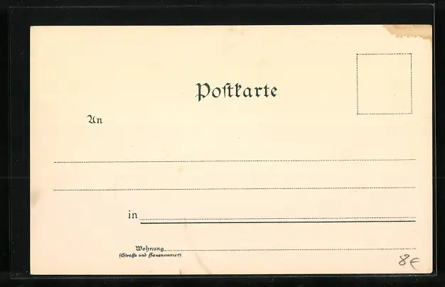 Personenbezogene Daten auf der Rückseite der Karte wurden durch blauen Textmarker unkenntlich gemacht. Die blauen Stellen sind auf die Vorderseite durchgeweicht und wirken sich negativ auf das Postkartenfoto aus
