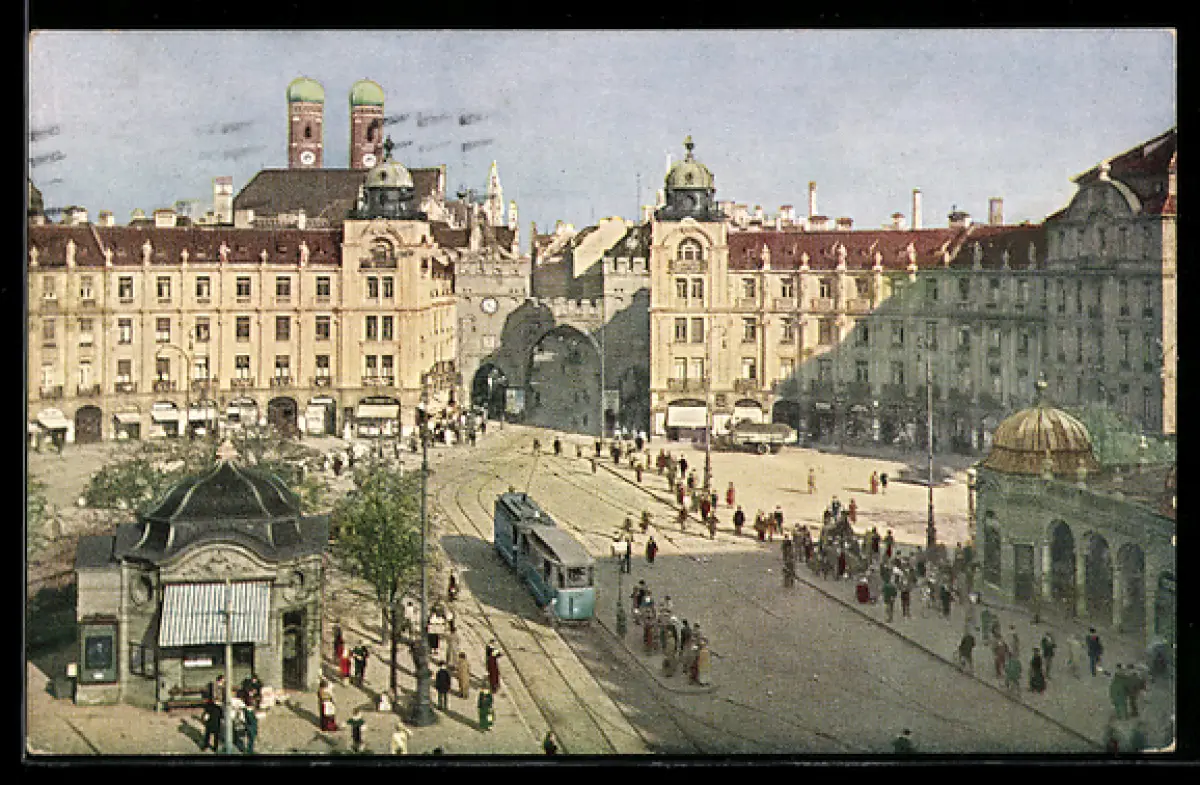 AK München, Am Stachus, Strassenbahn