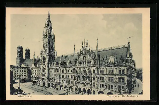 AK München, Ansicht des Rathauses mit Frauenkirche