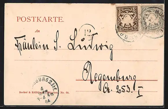 alte Ansichtskarte, gelaufen 1904, Stempelspur, guter Zustand